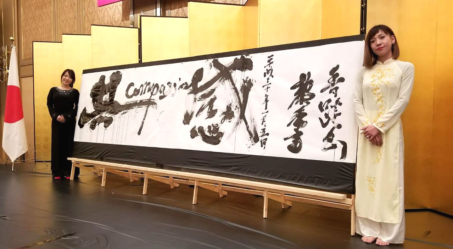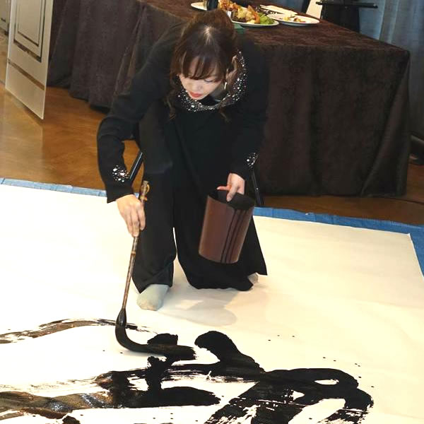 大筆パフォーマンスユニット【水狐×黎香】結成!書道家 谷﨑水狐(香蹊)さんと年始会のオープニングアクトにて